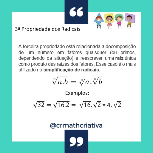 Desse modo, as propriedades dos radicais permitem simplificar e resolver raízes de qualquer índice.